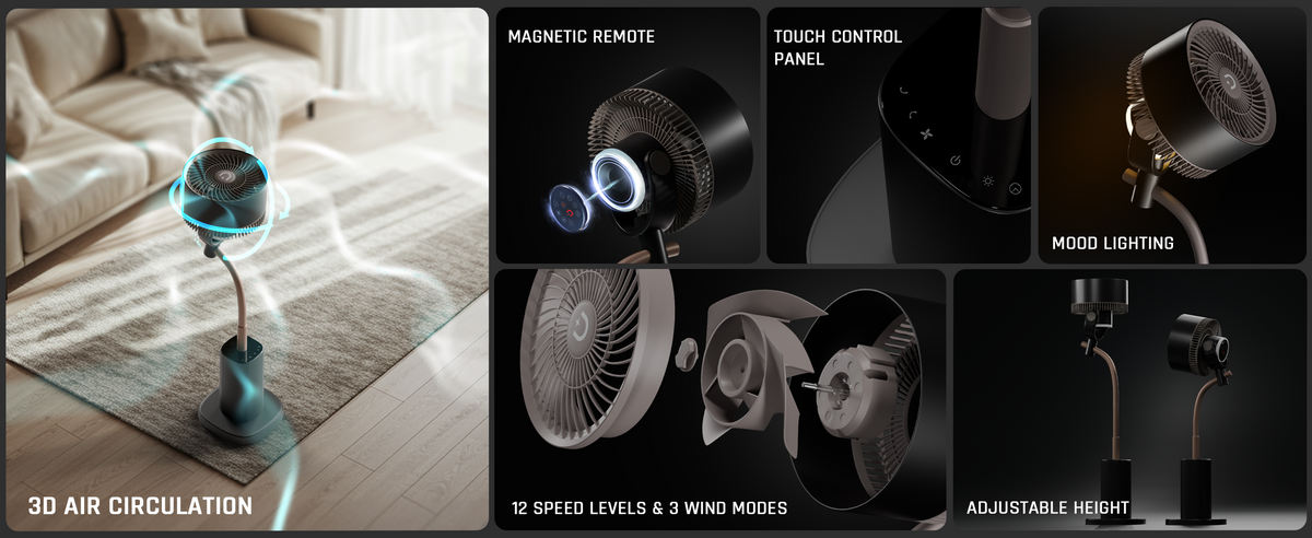 Highly rated for air circulation, quiet performance and remote convenience.